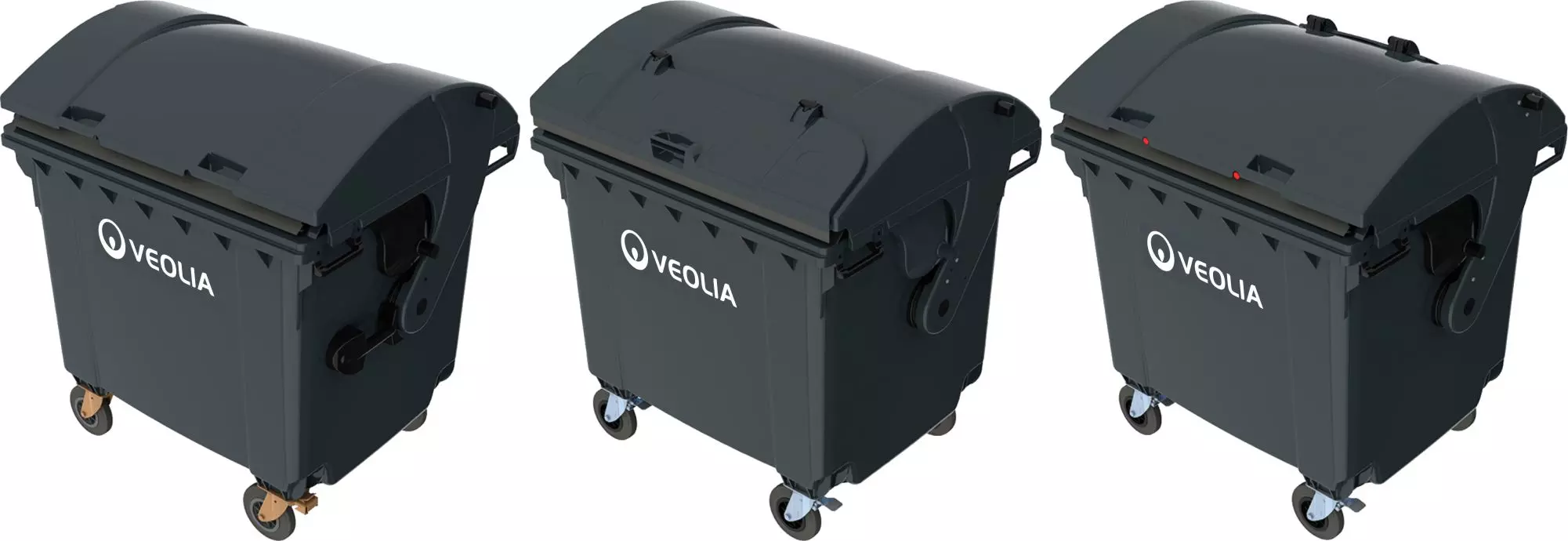 The complete range of 4 wheeled bins includes two variations - the flat lid available with three bin sizes of 660, 770 and 1100 liters, and the domed lid for the 1,100 liters containers.